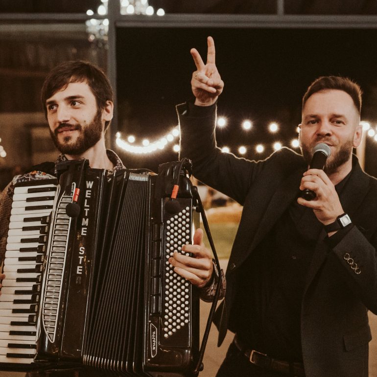 Przyjęcie realizowane przez dwie osoby Dj/Konferansjer, Dj/Muzyk akordeon.